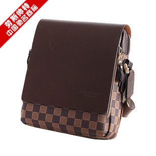 劳斯帅特牛皮经典格纹单肩斜挎包/男士精品单肩包