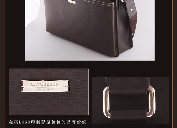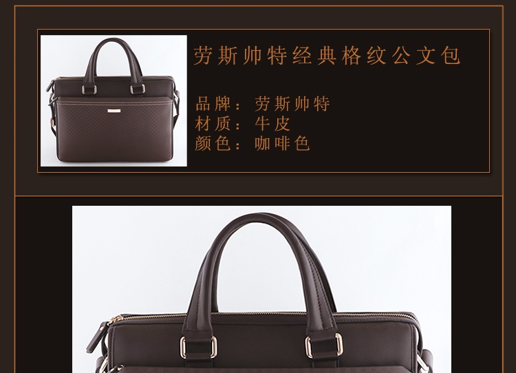 名称:劳斯帅特男士牛皮经典格纹公文包/商务包/手提包/单肩包