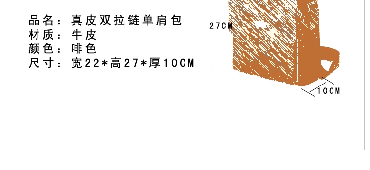 名称:【劳斯帅特】经典真皮双拉链单肩包/典雅绅士单间斜跨包