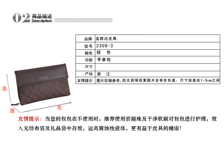 金路达时尚方格设计男士休闲手拿包/手拎包