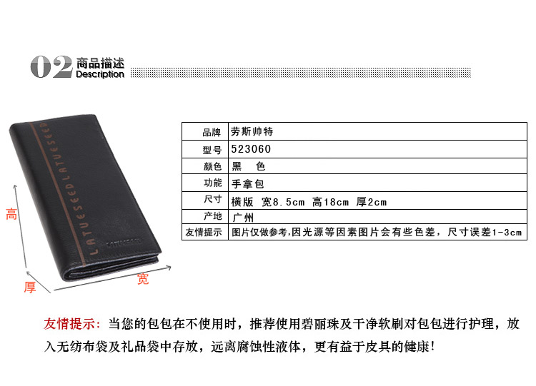 劳斯帅特男士牛皮休闲钱包 长款真皮钱包